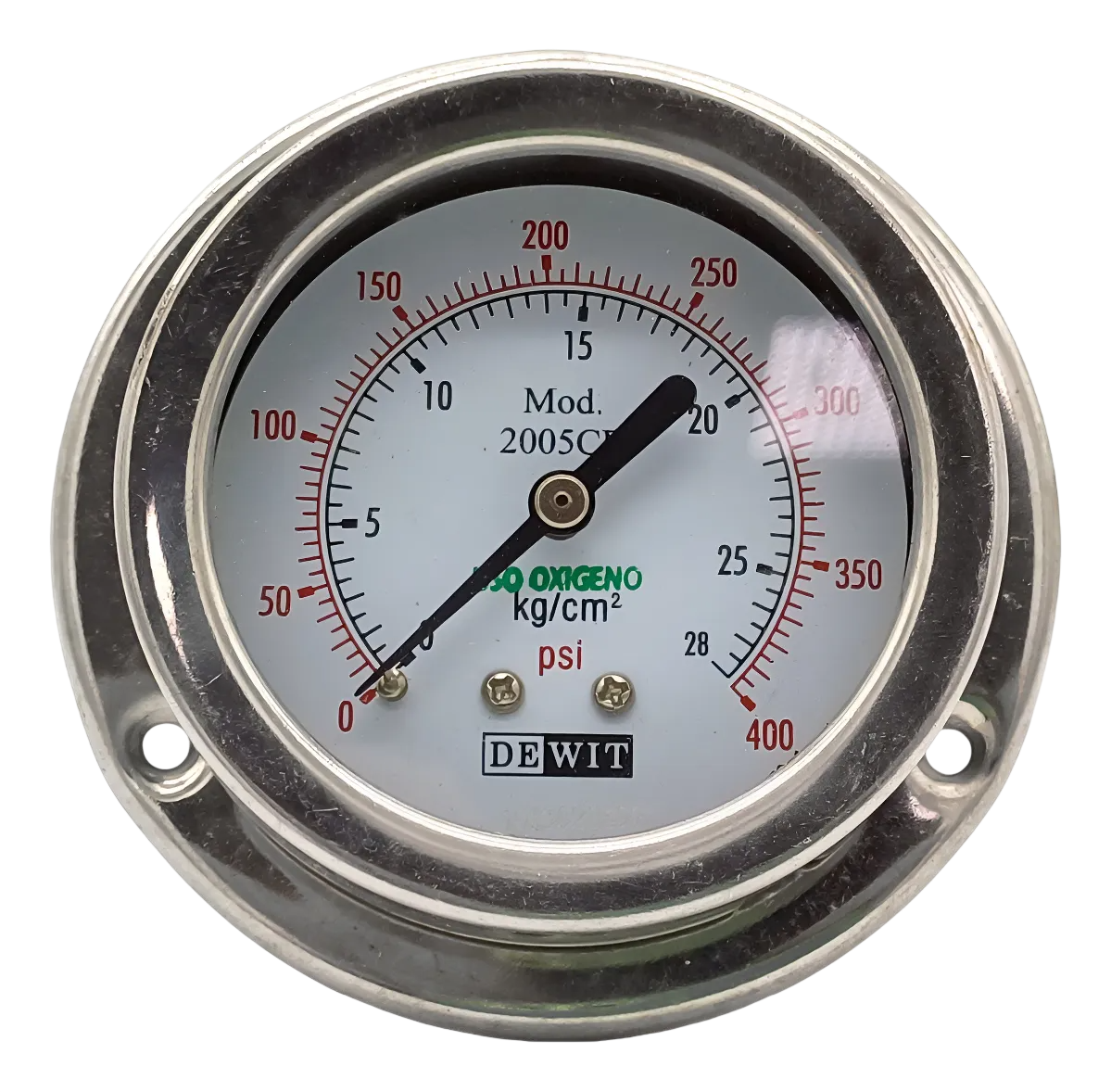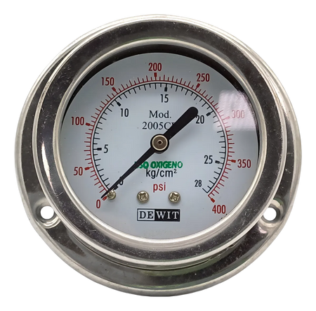 Manómetro Industrial posterior modelo 2005CB, caja acero inoxidable - Configurable tamaños de caratula, rangos de presión